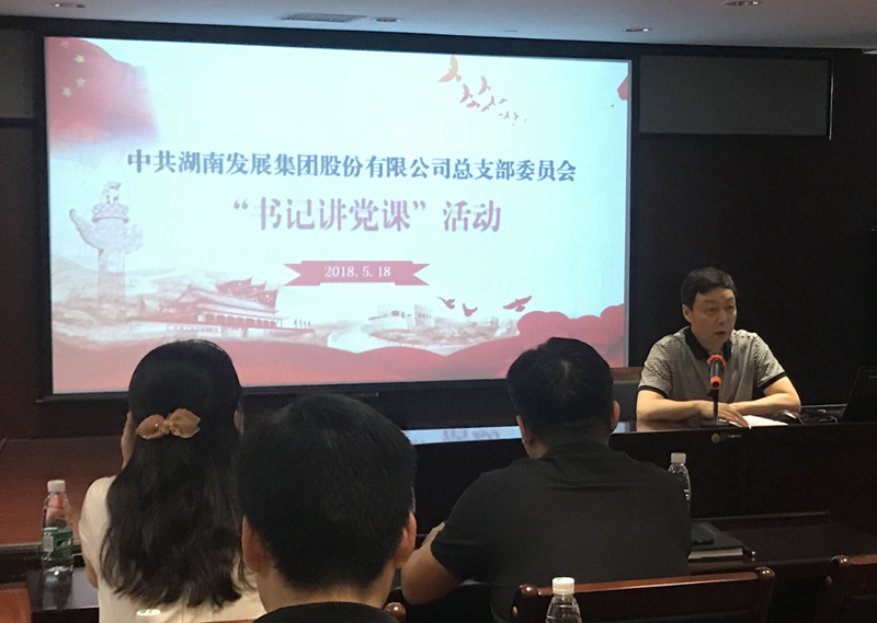 2018年5月18日下午,根據(jù)湖南省國資委系統(tǒng)“千名書記講黨課”活動部署,公司黨總支開展了以“學(xué)習(xí)貫徹習(xí)近平新時(shí)代中國特色社會主義思想和黨的十九大精神”為主題的支部書記集中講黨課活動。黨總支書記、總部直屬三個(gè)支部及湖南發(fā)展僑亞黨支部書記分別為大家上了一節(jié)黨課。本次黨課活動由公司黨總支委員、監(jiān)事會主席黃志丹主持,總部及湖南發(fā)展僑亞30余名黨員參加了學(xué)習(xí)。