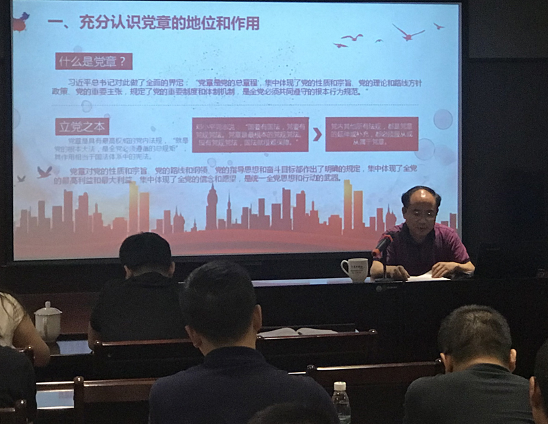 黨總支書記、總裁劉健同志在《學(xué)習(xí)尊崇黨章,爭做合格黨員》的黨課中,從黨章的地位、作用、歷程等方面向黨員全面解讀了中國共產(chǎn)黨章程,從黨章規(guī)定的黨員義務(wù)、習(xí)總書記系列重要論述及“四講四有”等角度闡述了合格黨員的標(biāo)準(zhǔn)。他希望公司黨員自覺以黨章、習(xí)總書記講話精神和“四講四有”為標(biāo)尺,隨時(shí)糾正個(gè)人的思想和行為,保持思想品德的純潔,保持工作作風(fēng)的優(yōu)良,保持工作績效的先進(jìn),保持個(gè)人行為的廉潔,主動融入公司的發(fā)展大計(jì),盡職盡責(zé)做好本職工作。